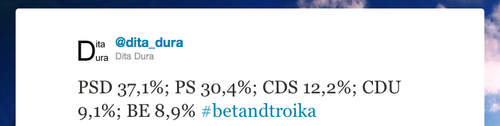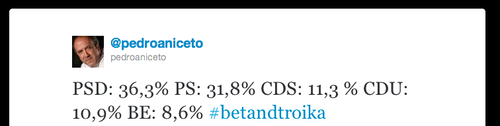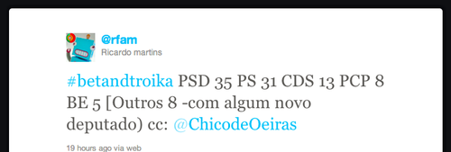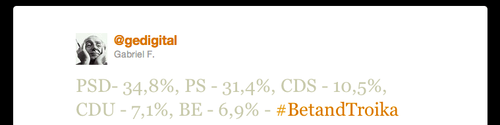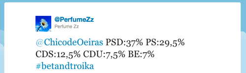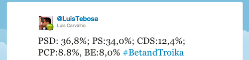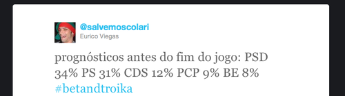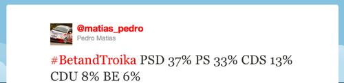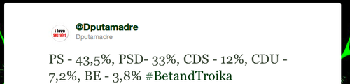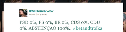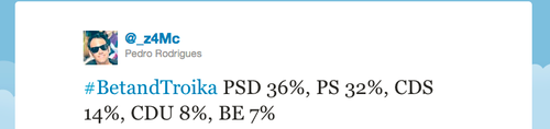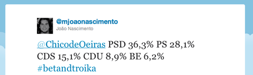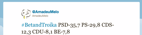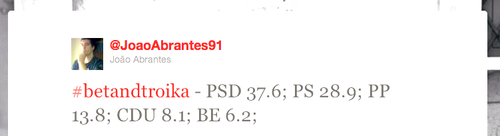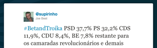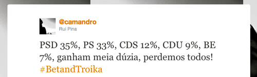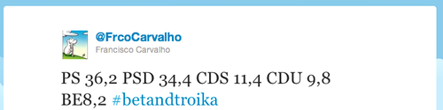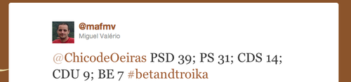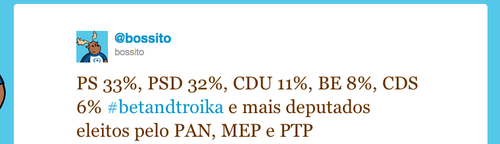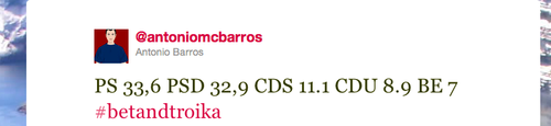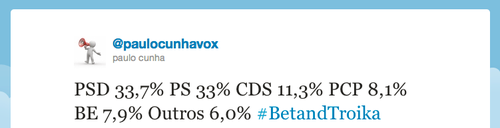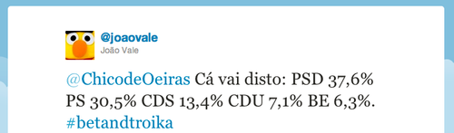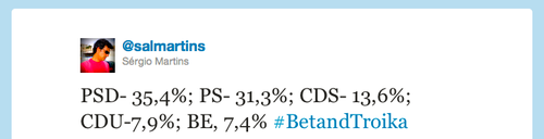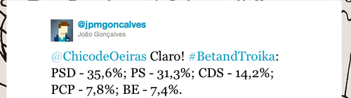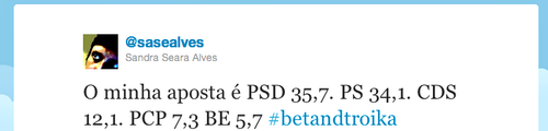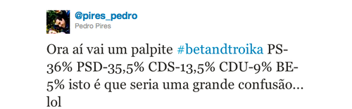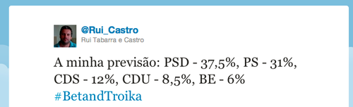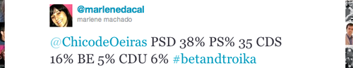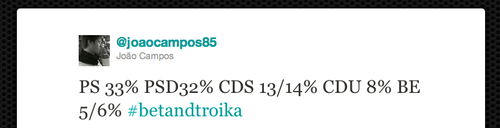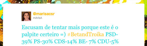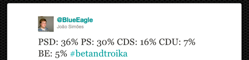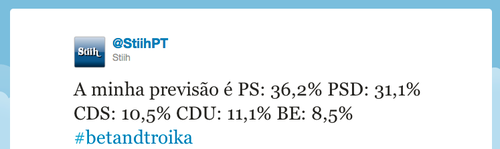 3. Envie um screenshot desse twitt (bem como o link para a página do concorrente) para betandtroika@sapo.pt até às 8:00 do dia 5 de Junho, para ser publicado no blog