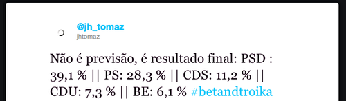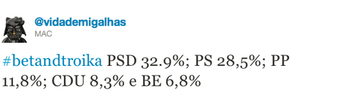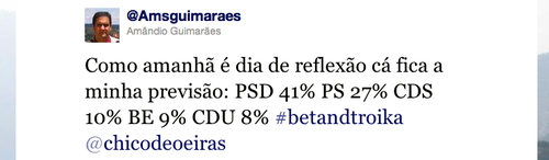 O vencedor do título de Grande Adivinho Político foi o @Gouveia com esta sua previsão.